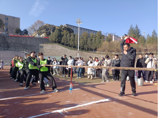 12月17日下午,由体育教学研究部、学生处和团委联合主办的商洛学院2025年拔河比赛在北新街校区田径场激烈开赛。各二级学院代表队奋勇角逐,现场助威声、呐喊声此起彼伏,成为校园里最动人的青春注脚。